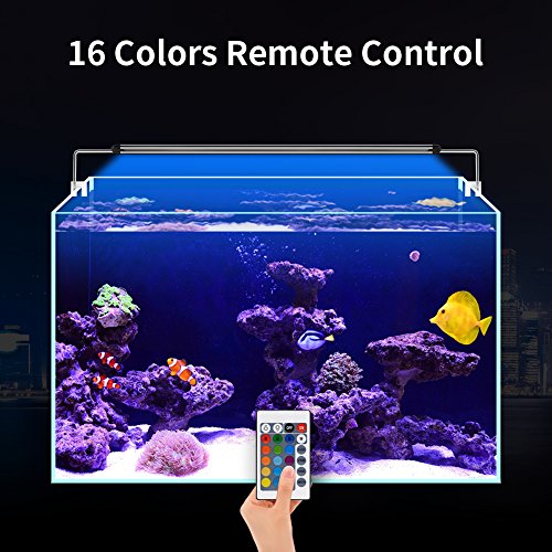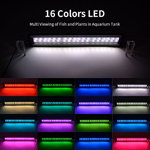 - 16 COLORS, 4 MODE: Multi color remote control of the aquarium lamp offers 16 colors: Red series, Green series, Blue series and Pure White. 4 light changing modes: Flash, Strobe, Fade, Smooth. 2 light intensity modes.