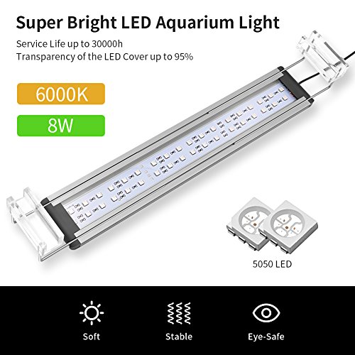 - ENERGY-EFFICIENT: The aquarium light features 36 LED, 1000 lumen output but only 8W.