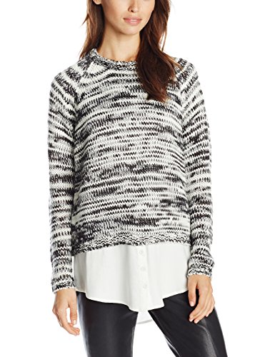 Space-dye sweater in cropped silhouette featuring attached button-up blouse at hem