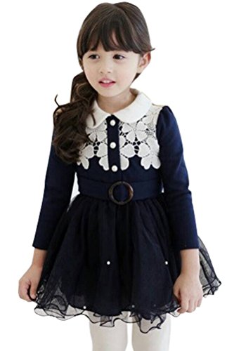 Both fashion and lovely design: Doll Collar, hollow lace flower and waistband with buckle design, very beautiful and elegant dress. It is perfect for your sweetheart's daily wear and special occasion wear.