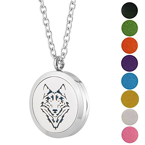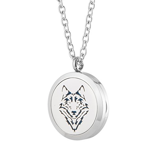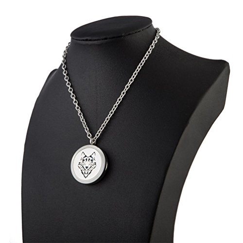 Aromatherapy Essential Oil Diffuser Necklace - Wolf Stainless Steel Locket Pendant Men Boy Fragrance Jewelry - for Father's Day Gift By Jenia