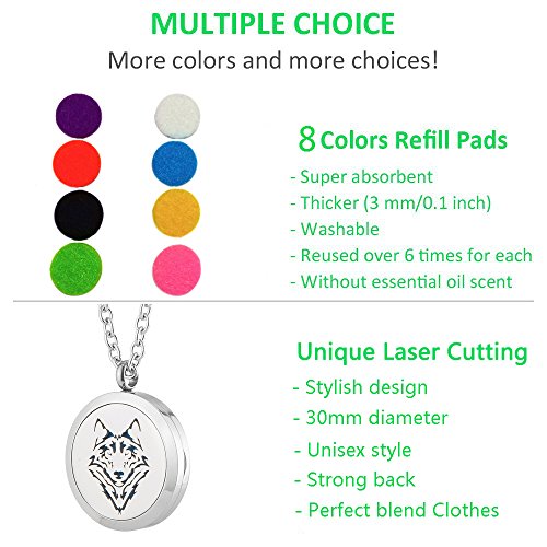 - 🐺 The strong magnetic closures and solid back protection of the pendant firmly secure the felt pad and favorite oil without the slightest possibility of the oil touching your skin or staining your dress.