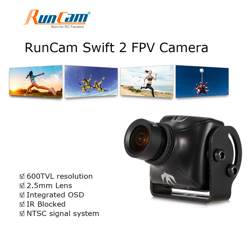 RunCam Swift 2 600TVL 2.5mm Lens FPV Camera OSD w/ IR Blocked NTSC for QAV250 Racing Drone Quadcopter Aerial Photography