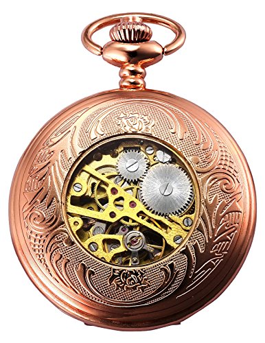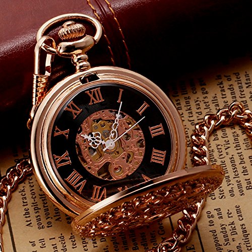 -. Feature : Sold by AMPM24 Store. Package Includes: 1 x Pocket Watch and 1 x AMPM24 Gift Box / FEATURE: - Full hunter case. - 17 Jewel mechanical movement. - Skeleton dial and hands. - Removable chain with hook. / SPECIFICATION (approximate) - Case diameter: 47mm. - Case thickness: 17mm. - Case Material: alloy. - Chain Length: 340mm (hook included). - Chain Material: alloy. / RETRO DESIGN:Vintage Rome numeral time mark and transparent case. / IDEAL GIFT:A best gift for boyfriend,father,business partner,friend,brother,colleagues,family
