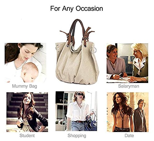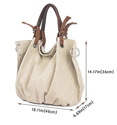 -. Brand : Shayin -. ClothingSize : One size -. Department : womens -. Feature : Dimension:18.11(L)x 14.17(W)x6.69(H) Inches ;Total Strap Length:55.1 Inches (can be adjusted );Shoulder Strap Drop:7.48-9.44 Inches (can be adjusted ) / Material Feature :The material is heavyweight and high quality .It is like a strong denim.It is a real zipper pull leather. / Interior Construction:Zippered inside pocket is great on one side with the other side having two slots for a cell phone etc. There is also a large zippered pocket down the middle of the bag separating the main inside compartment which is handy. / Exterior Construction:Handles are very sturdy with 2 leather straps and are able to be lengthened or shortened somewhat as they have a canvas end with 3 belt-type holes for adjustment. The bag also has 2 large metal rings on each top end for the detachable canvas cross body strap if that suits you. It has a long adjustable strap for carrying and fits great as an over the body bag or shortened and carried on your shoulder / NOTE :Make sure to read the specifications before you buy it though. This bag is very sturdy and the strap is long enough so that you can wear it crosses over your body when you are traveling,or shopping ,etc. -. PackageQuantity : 1 -. ProductGroup : Shoes -. ProductTypeName : HANDBAG -. Size : One Size -. Title : FXTXYMX Oversized Vintage Hobo Canvas Leather Tote Handbag Crossbody Shoulder Bag Purse for Women