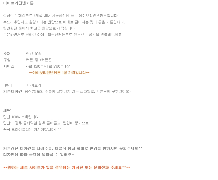 **고급린넨으로 제작하는 아이보리린넨커튼입니다 **