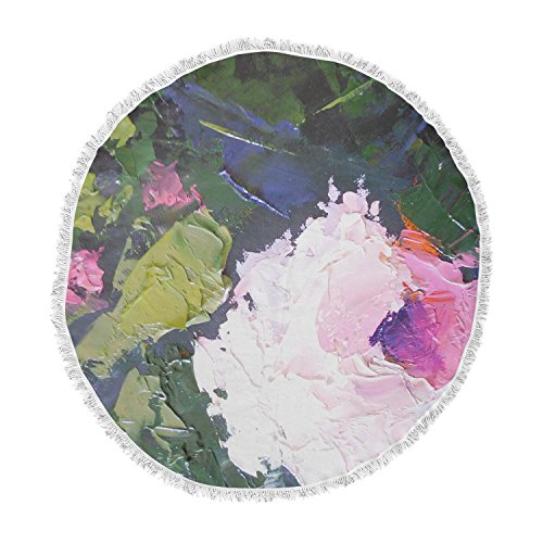 KESS InHouse Carol Schiff Textured Pink Rose Green Painting Round Beach Towel Blanket