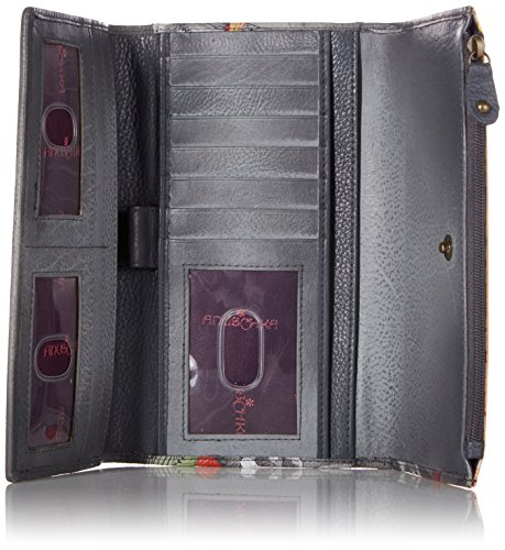 -. Title : Anuschka Anuschka Handpainted Leather Three Fold Clutch-flamboyant Flmingos Wallet