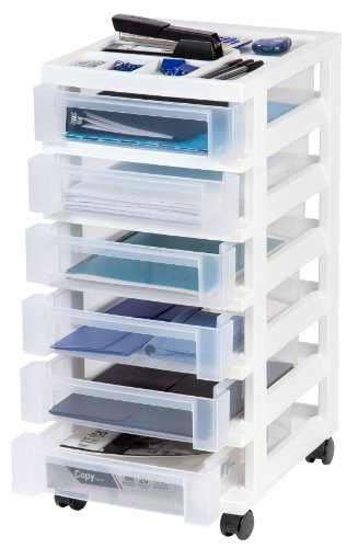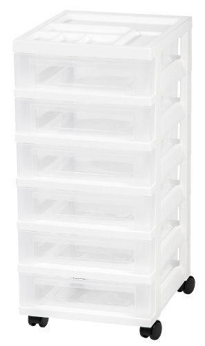 IRIS 6-Drawer Storage Cart with Organizer Top,White