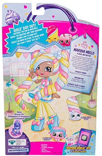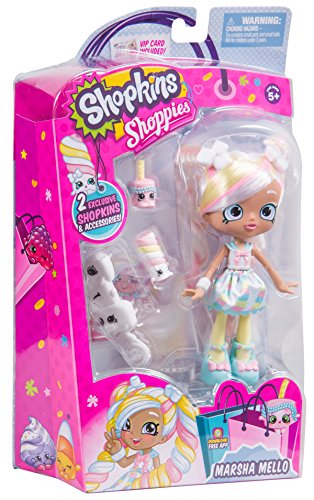Everyone has a soft spot for Marsha Mello! With sweet curls of marshmallow swirls she’s a little girl who never wants to grow up. Gooey on the inside and always full of bounce, Marsha is a baby-talker who goes gaga over anything that’s cute and fluffy! Each Shoppie comes with their own brush to style their hair, 2 exclusive Shopkins and a VIP Card to use with the free Shopkins App!* *Enter your card’s code for VIP access & rewardsFeature