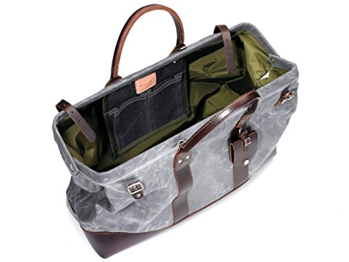 -. Brand : Billykirk -. Department : mens -. Feature : Excellent as a weekend travel bag / Width: 20" | Height: 11" | Depth: 6 1/2" - Easily able to fit a 15" Laptop...or two! / Shoulder Strap Length: 39" - 49 1/2" - Handle Drop: 6 1/4" / 20 oz Waxed Canvas, #10 Duck - American Hide, Latigo Leather / Made in USA -. ProductGroup : Apparel -. ProductTypeName : LAGE -. Size : one size -. Title : Billykirk No. 166 Medium Carryall