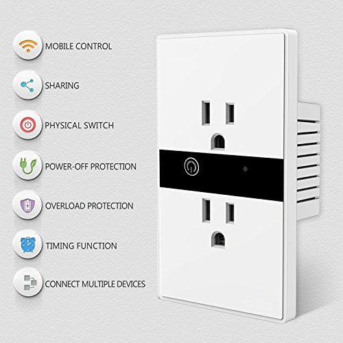 Smart Wall Outlet, Wi-Fi In-Wall Socket with Timing Function, No Hub Required, Remote Control Your Devices Anywhere, Works with Amazon Alexa, Google Home (Android 4.1 / iOS 8.0 Above)