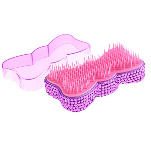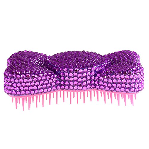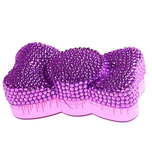 Handmade Lovely Bowknot Design Purple Bling Crystal Paddle Brush Cute Rhinestone Hair Brush