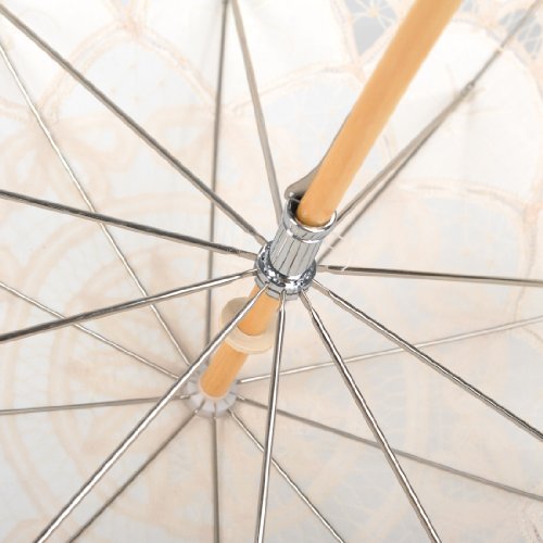 -. Feature : Metal ribs, wooden shaft and handle; Audience: Adult / Length: approx. 26inch (66.5cm) from the tip to the end of the handle / Diameter: approx. 29.5-31.5inch(75-80cm) from tip to tip when open(2cm deviation due to handmade) / Great for wedding, bridal shower decor, bridesmaid gifts, photography, parties, theatrical performances, decoration or other special occasions. YET Not waterproof / About the package, please kindly know that we have improved our package which prevents umbrella being damaged in transit. If the received item was defective, please contact with our customer service for help