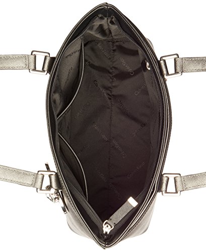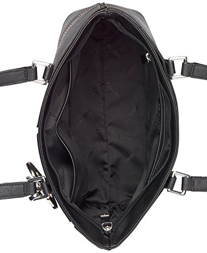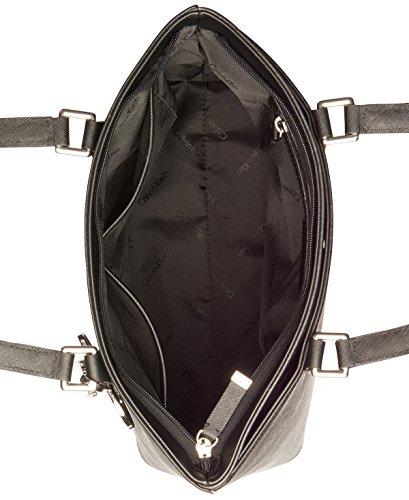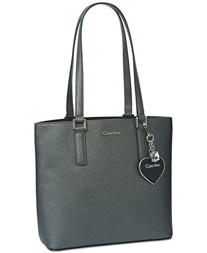 Product Description A matching logo charm dangles from the ample handles of a perfectly polished Calvin Klein leather tote lined with pockets and sized to fit a laptop or tablet. 0
