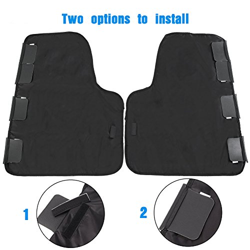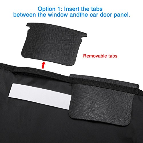 -. Feature : Two options to install, the pet door covers come with two installation options, Velcro or plastic slides that fit snugly inside the window well.You can choose a way to install that you like / Waterproof car door guard,it is protect the back doors from slobber and scratches and tons of dog hair.And it does not interfere with the windows of the ca / With a faux-suede that would likely be easy to clean and it is easily washable and most importantly it is washing machine friendly as well / Velcro tape at the bottom to stop flapping in the wind. Free to roll down and up the windows when installed with the velcro tapes / Includes 2 covers, one for the left door and one for the right. Size: 28'' Width X 22'' Height, one size fits all