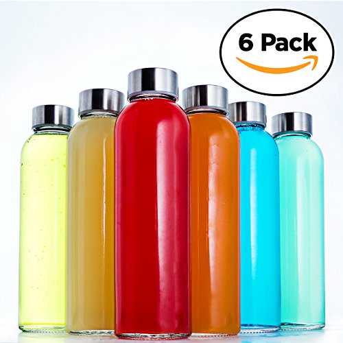 Amethya' set of 6 18-Ounces Glass Bottles will let you safely, conveniently store your favorite beverages in the refrigerator, or take them with you to the gym or office, for example.