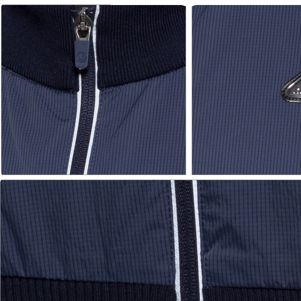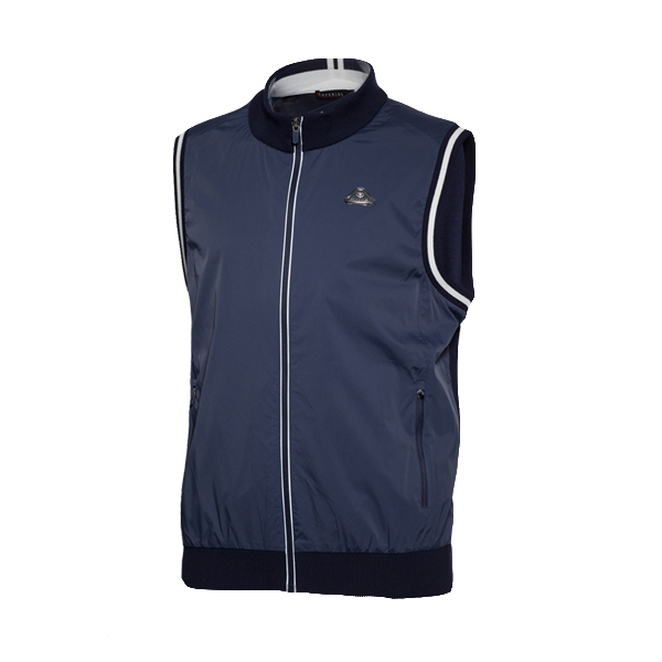 앞판 우븐 패치를 한 니트 베스트로 안쪽에는 메쉬 안감을 사용해 몸에 붙지않게 입을 수 있으며 무난한 디자인으로 누구나 쉽게 착용