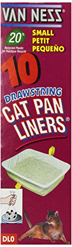 Product Description Pureness small drawstring cat pan liners. Made from 65-percent recycled plastic using 3 ply no tear technology and fits pans up to 16-inch by 12-inch, 10-count. 0