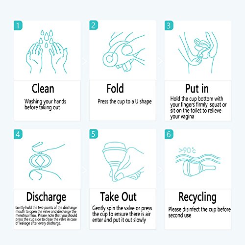 Method of disinfection: Please wash the cup by warm water and soap water during menstrual period, and disinfect the cup in boiling water for about 2-5 minutes or soak in the disinfectant after menstrual.