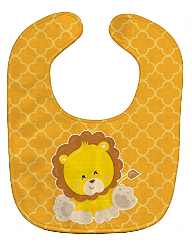 -. Title : Caroline's Treasures Lion on Quatrefoil Baby Bib, Orange, Large