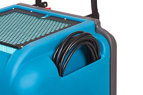 The Dri-Eaz LGR 7000XLi is a low grain refrigerant dehumidifier that can remove up to 130 pints of water per day under the Association of Home Appliance Manufacturers (AHAM) test conditions of 80 degrees F and 60% relative humidity (RH). This dehumidifier draws 8.3 amps on a 115V power supply, and processes air at a rate of up to 325 cubic feet per minute (CFM). It has a built-in humidistat to automatically control the RH at a pre-set level, and built-in sensors that monitor performance parameters, such as air inlet and outlet temperatures. The digital control panel displays sensor readings, settings, and errors in plain-language messages to minimize the need to interpret code status messages. Display panel languages include Spanish, German, French, and English. This dehumidifier has a pump basin for holding condensate that is sealed to help prevent spills. The pump basin is attached to a 40' hose for removal of condensate across wide spaces.