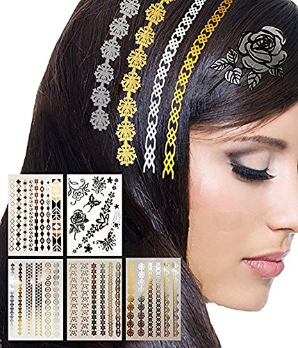 Hair Tattoos are finally here and They're Actually Really Pretty. The newest Hottest craze, hair tattoos have finally arrived! Worn by celebrities on the red carpet, these hair tattoos are now available to you. Each set contains 10 Hair Tattoo sheets as shown on this page so all together you get around 60 tattoos. Buy for yourself or share with friends.Feature