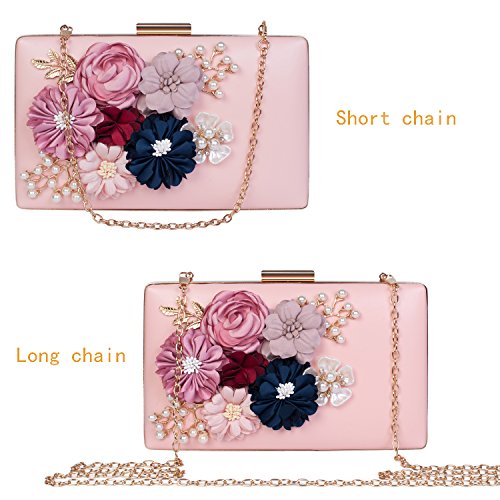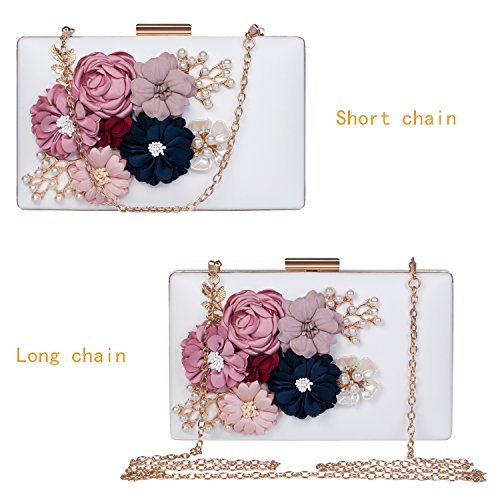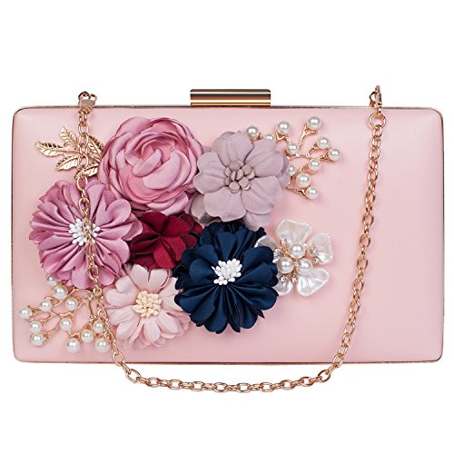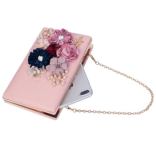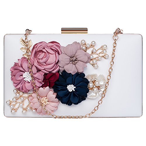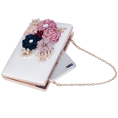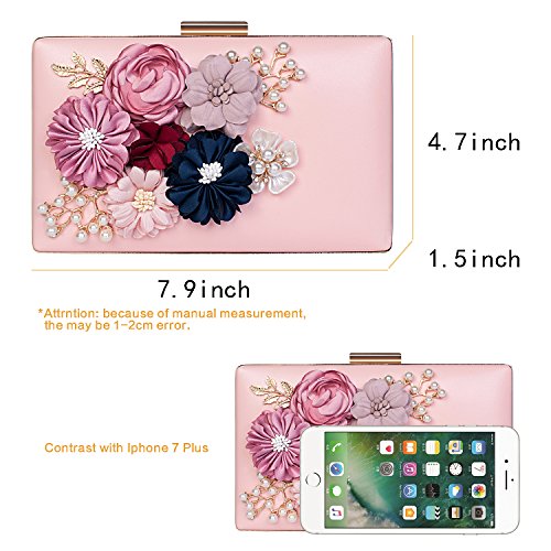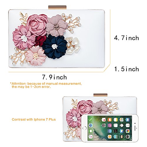 This vintage style bling pearl flower handbag captures all the surrounding eyes and sparkles to be perfection. Exquisite size with roomy capacity, can put in iphone 7 plus, lipstick or lip gloss and other small things. The surface is decorated with three-dimensional flowers and metal leaves, both are handmade sticky paste and made you 100% attracts lots of admiring glances. Exquisite elegant design for your daily wear to add noble and elegant beauty. It makes us love life better. Many ways to use: Clutch evening handbag, Chain strap bag, Shoulder bag, Crossbody bag, Tote bag, Wallets.