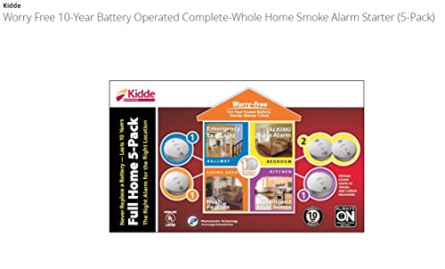 -. Title : Kidde 21010613 Worry Free 10-Year Battery Operated Full Home 5-Pack (4 Smoke alarms, 1 Combo Smoke/CO alarm)