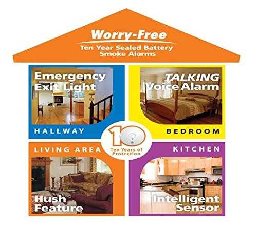 -. Feature : Full Home starter pack includes 5 Worry Free 10-Year smoke alarms / Sealed-in lithium power supply / Sealed-In battery protects again disabling or tampering with the alarms battery