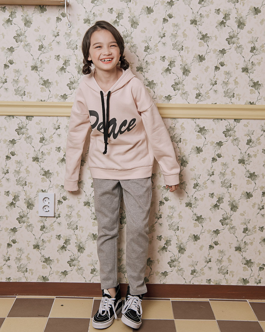 9, 11, 13, 15, 17호로 준비되어 있으며 하단에 측정된 사이즈 표를 참고해 주세요. 피팅한 여아 모델은 140cm에 31kg으로 다소 마른 체격이며, 딱 맞게 인디핑크 11호를 착용하였습니다. 깔끔한 핏으로 잘 맞네요 :)