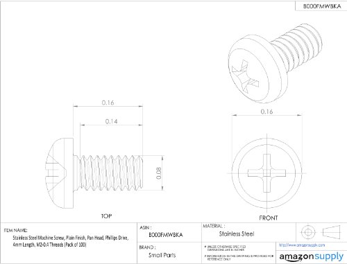 Stainless Steel Machine Screw, Plain Finish, Pan Head, Phillips Drive, 4mm Length, M2-0.4 Threads (Pack of 100)