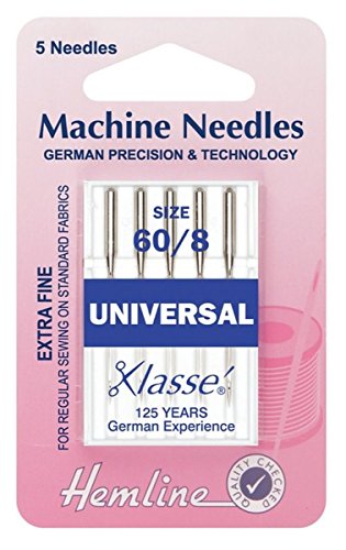 -. Feature : Hemline Machine Needles - Universal 60/8 (Extra Fine) / Pack of 5 / Suits all modern machines / Suitable for regular sewing on standard fabrics