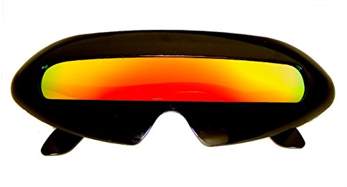 -. Brand : Kiss -. Department : unisex-adult -. Feature : Really Cool Revo Lens creates dynamic color changes when light hits it. / Great for costumes or novelty. You could wear these everyday--but you might get "some looks". / Great for Parties and Novelty-Large Wrap Around Shape / Call them Alien, "Trekie" Cyclops, our Futuristic. These are fun! -. ProductGroup : Apparel -. ProductTypeName : EYEWEAR -. Size : Adult Large -. Title : Futuristic Cyclops Mirror Single Lens Oval Sunglasses...
