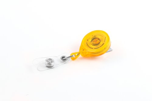 KEY-BAK MINI-BAK ID Retractable Reel with 36 Inch (91.4 cm) Nylon Cord, Swivel Bulldog Clip, Vinyl ID Strap, Translucent Orange, Made in the USA