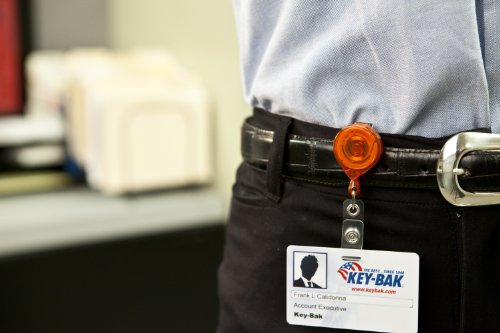 The KEY-BAK MINI-BAK ID Badge Reel is Made in the USA and engineered for a lifetime of use. Built with the best quality stainless steel spring, rest assured that you are buying the most reliable badge reel manufactured in the world. Small but mighty, MINI-BAK reels have been tested in excess of 500,000 pulls. The 1-Inch diameter case is made of strong ABS plastic, the same material we have used since inventing the badge reel in 1981. With 2 ounces of retraction force, the reel will hold anything equal in weight to 4 large keys. Whatever you choose to secure, know that the 36-Inch of 3-strand nylon cord that is in your MINI-BAK ID retractable reel is of the highest quality and the same material trusted in the construction of parachutes for the United States Military. Included is a vinyl ID strap and swivel tear-drop end fitting for increased durability and versatility. The MINI-BAK ID attaches with a swivel bulldog clip that easily attaches similar to a clothes pin. The Original MINI-BAK is designed to keep the things you use most often, like keys, ID badges and small tools handy and ready to use. Behind every Made in USA KEY-BAK key reel or key accessory, is over 60 years of experience and quality craftsmanship. Originally invented in 1948, KEY-BAK reels have become an invaluable tool in the daily lives of countless professionals who rely on secure and convenient access to all their keys. Not only are KEY-BAK reels perfect for your keys, KEY-BAK reels also work great for small hand tools, gauges, flashlights, law enforcement, Identification, and outdoor gear. We stand behind every product we manufacture with an Unconditional Lifetime Service Policy.