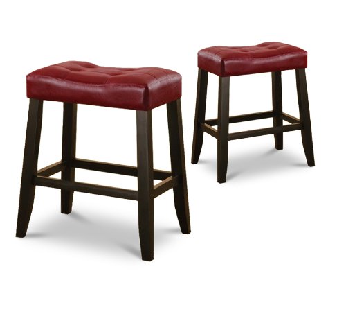 -. Brand : The Furniture Cove -. Color : Black -. Feature : Set of 2 Stools / Red Cusion with Dark Cherry Wood Finish / 24" H -. Label : The Furniture Cove -. Manufacturer : The Furniture Cove -. ProductGroup : Furniture -. ProductTypeName : HOME_FURNITURE_AND_DECOR -. Publisher : The Furniture Cove -. Studio : The Furniture Cove -. Title : 2 24" Red Cushion Kitchen Counter Dining Saddle Back Black Finish Bar Stools