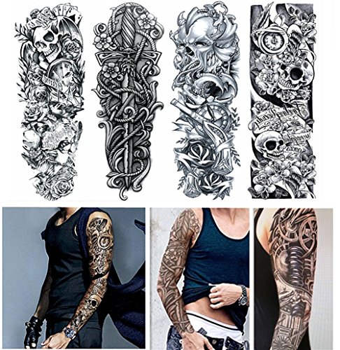 -. Title : 4-Sheets Large Temporary Tattoo Paper Arm Tattoos Rock Star Body Art Waterproof Big Size Tattoo Sticker Make up for Men