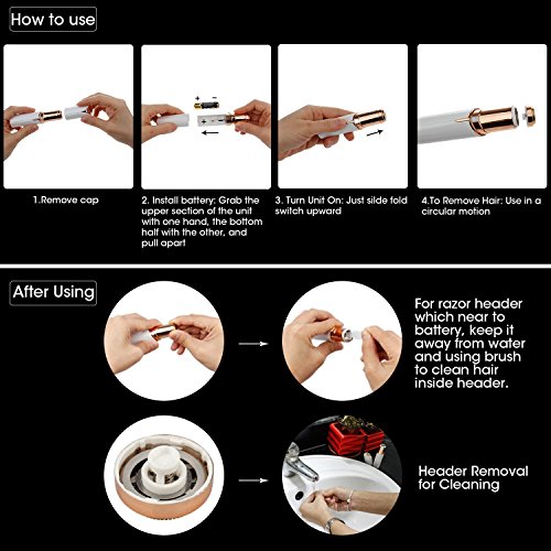 -. Title : Hair Remover for Female, Mini-Portable Ideal Facial Hair Removal Device, Travel Epilator for Women Painless Smooth Touch on ALL Skin Types Extra 2 Hair Removal Head Replacements included.