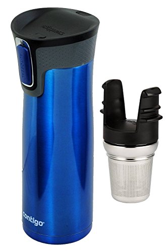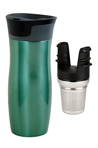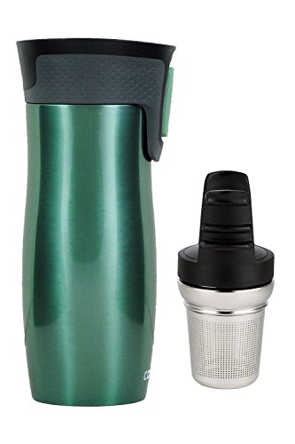 -. Brand : Contigo -. Color : Stainless Steel -. Feature : Includes (1) Contigo 20oz Stainless Steel Travel Mug & (1) Contigo Stainless Steel Tea Infuser, Greyed Jade / Tea Infuser only fits Contigo's Autoseal West Loop Travel Mug family; Measures 4.4" H x 2.3" wide / Stainless steel tea basket has finely etched holes for superior steeping; Fine holes ensure no tea leaves/dust in the brew / West Loop Travel Mug features patented Autoseal lid automatically seals between sips to prevent leaks and spills / All parts of the West Loop travel mug and tea infuser are top rack dishwasher safe -. Label : Contigo -. Manufacturer : Contigo -. ProductGroup : Kitchen -. ProductTypeName : KITCHEN -. Publisher : Contigo -. Size : 20 oz -. Studio : Contigo -. Title : Contigo West Loop Travel Mug with Contigo Stainless Steel West Loop Tea Infuser Set