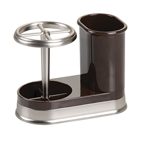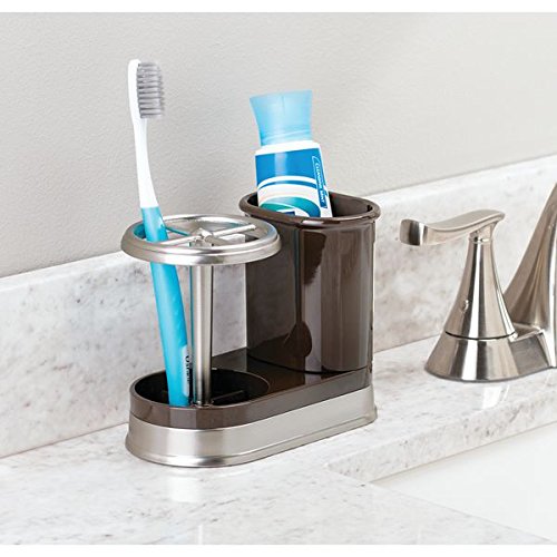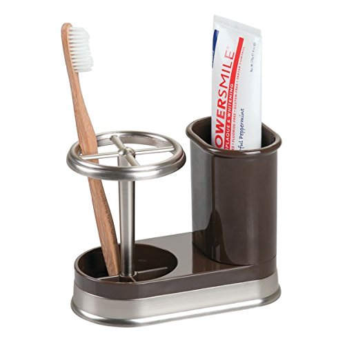 mDesign Toothbrush and Toothpaste Holder and Organizer for Bathroom Storage – Dark Brown/Brushed