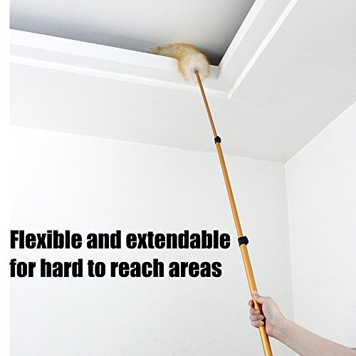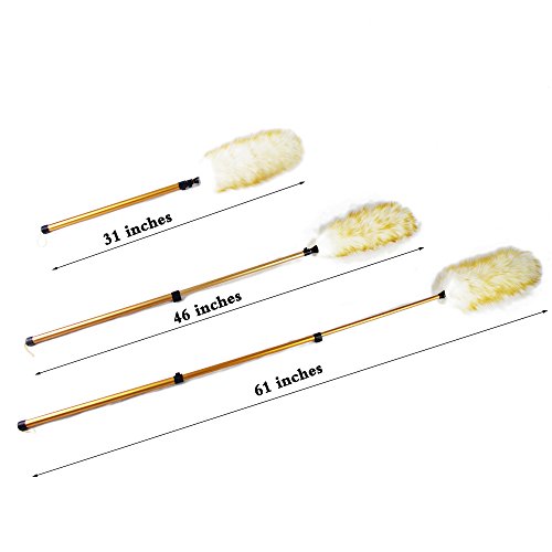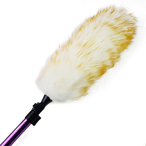 Pure Lambs Wool Feather Duster with Extension Pole,Extend 30-61 inches Telescopic Duster for High Ceilings (Purple)
