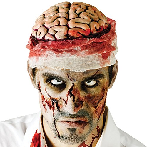 This gruesome headpiece is the perfect topper for an authentic zombie-fied Halloween costume. Or wear it with a hospital gown to play a mental patient who escaped during surgery.