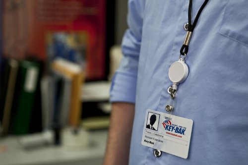 -. Title : KEY-BAK RETRACT-A-BADGE Cord Lanyard 5-Pack Retractable Reel, 16" Black Cord Lanyard, 36" Retractable Cord, ID Strap, White Reel