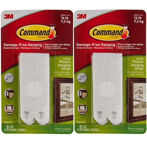-. Feature : Heavy duty large interlocking fastener hanger strip sets kit / 1 fastener set = 2 strips: 1 for frame, 1 for wall; Easy to apply, holds pictures & frames strongly; Damage-Free hanging - removes cleanly w/no residue; Without nails; No excessive hardware, tools, wire needed. Great for collages, artwork, craft projects, hanging dry erase boards, lightweight clocks and mirrors, office decor / Fasteners lock w/no tools, stronger than Velcro; Will stick to painted, stained or varnished wood, cinder block, plaster, metal, painted wallboard; See photos for strip weight & frame size capacity. Removable and repositionable makes these great for redecorating. / White, 3M quality, Great for collages; Made in the USA, Each strip 2.8"L x .75"W / (12) Sets of 3M Large Command Hanging Strips (3 Packs Of 4), Model 17206-ES, White, New In Retail Packaging