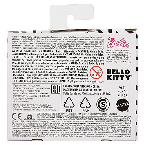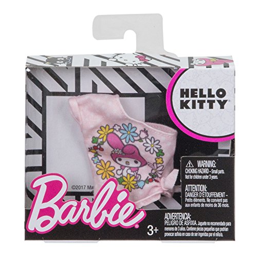 -. Binding : Toy -. Brand : Barbie -. EAN : 0887961603309 -. Feature : Barbie doll (sold separately) has captured some of her favorite influences in a cool collection of clothing / These tops incorporate recognizable icons into cool prints from iconic brands Hello Kitty, Little Twin Stars, Chococat and My Melody / Mix and match with other Barbie doll clothing to spark imaginations and storytelling fun (each sold separately, subject to availability) / More variety makes collecting Barbie dolls and fashions even more fun -collect them all / Collect them all -. IsAdultProduct : 0 -. Label : Mattel -. Manufacturer : Mattel -. Model : FLP43 -. MPN : FLP43 -. NumberOfItems : 1 -. PackageQuantity : 1 -. PartNumber : FLP43 -. ProductGroup : Toy -. ProductTypeName : TOYS_AND_GAMES -. Publisher : Mattel -. ReleaseDate : 2017-08-22 -. Studio : Mattel -. Title : Barbie Fashions Hello Kitty Pink One Shoulder Tank -. UPC : 887961603309 -. Warranty : No Warranty