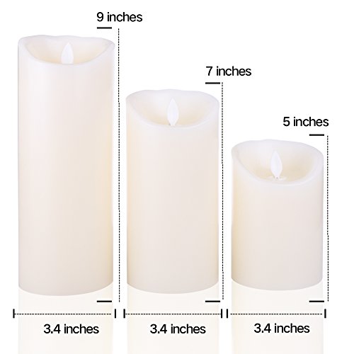 EASY & CONVENIENT OPERATION: With One REMOTE CONTROL, You Could Control Flameless Candles of Different Sizes and Our Sets of 5¡±7¡±9¡± Flameless Candles.Once the timer is set, the candle comes on at the same time each day Timer feature allows you to set 2H | 4H | 6H | 8H, timed to automatically turn on and off.