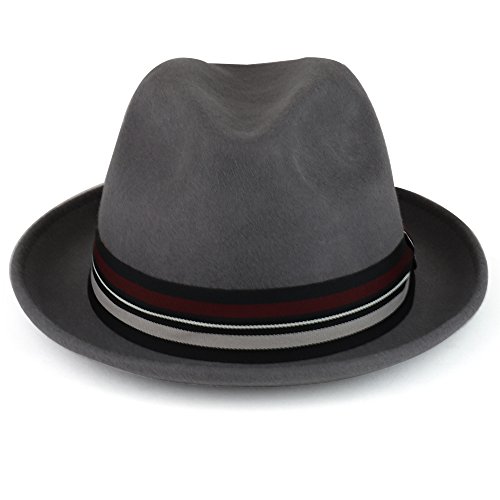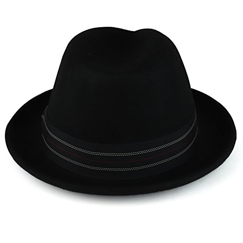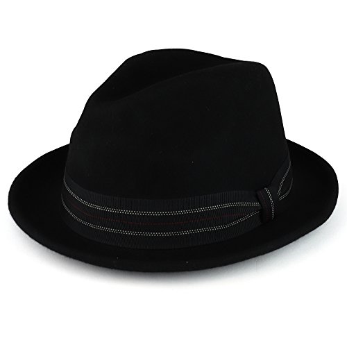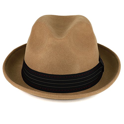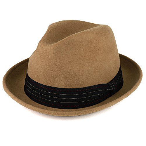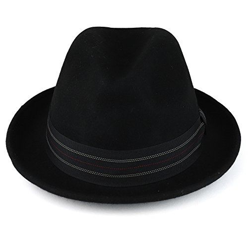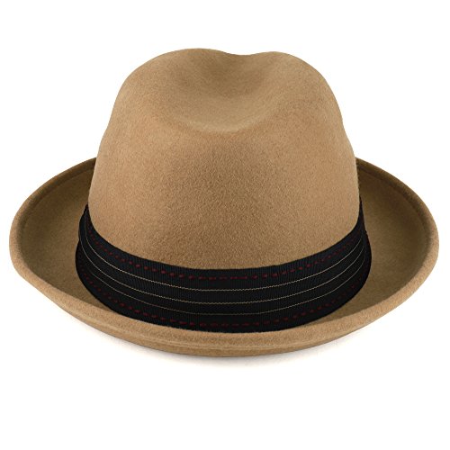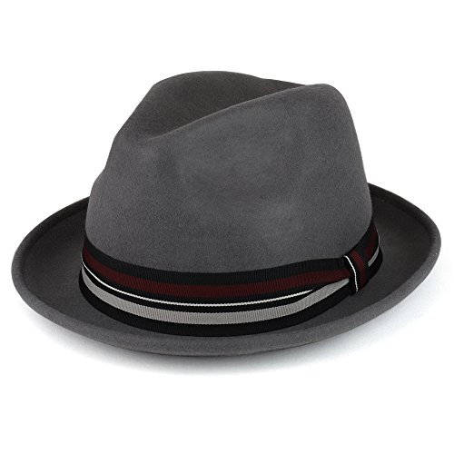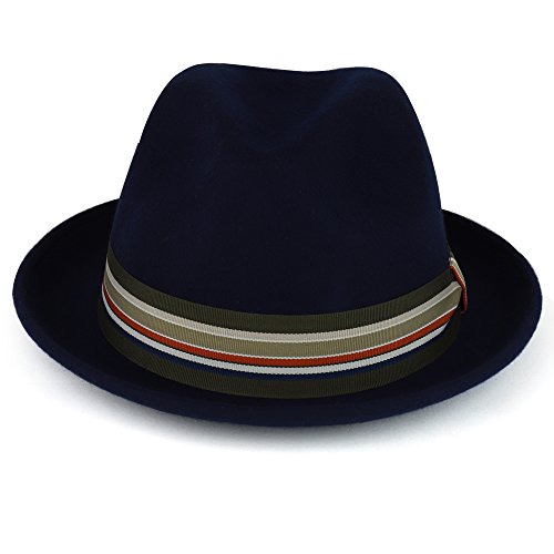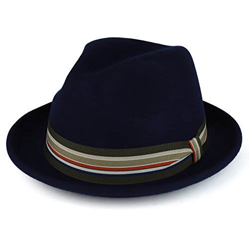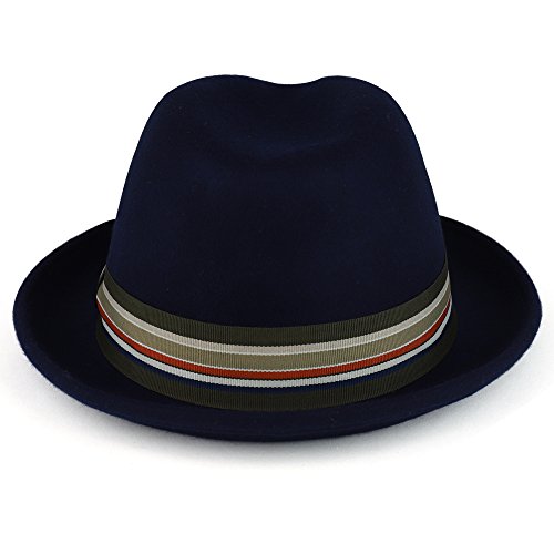 Product Description Soft wool felt pinch front hat with a 2 inch snap brim. Stylish striped grosgrain ribbon bands with matching inside sweatbands. Unlined. Available in XXL. 0