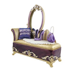 Victorian Mirror Vanity Jewelry Box Ring Organizer 7.5 Inches, Purple