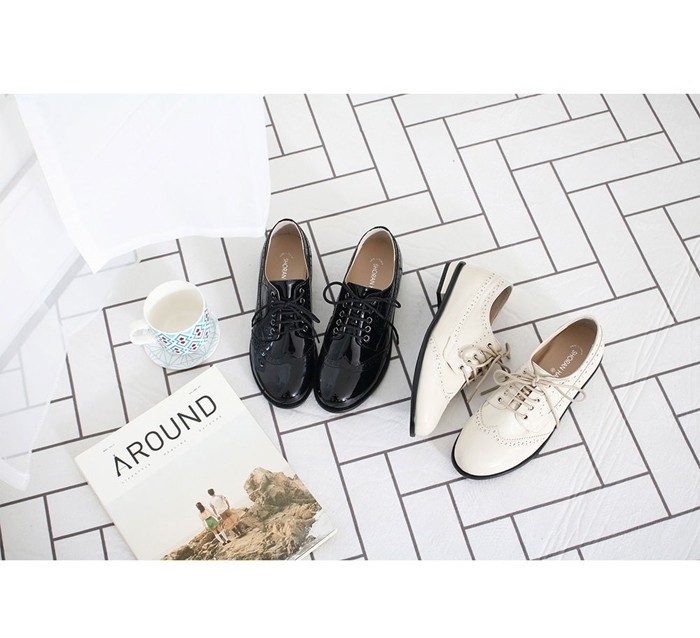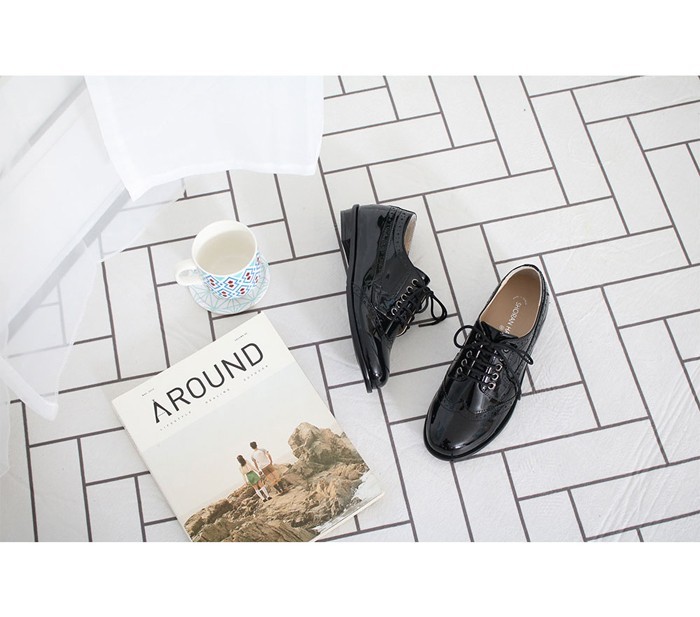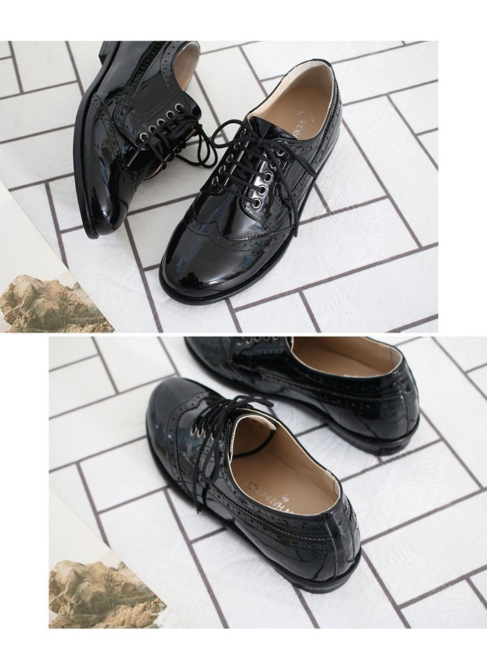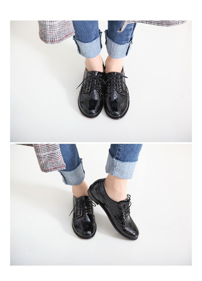 商品名:ローファー レディース レースアップ エナメル調 2017 秋 冬 ファッション 靴 婦人靴